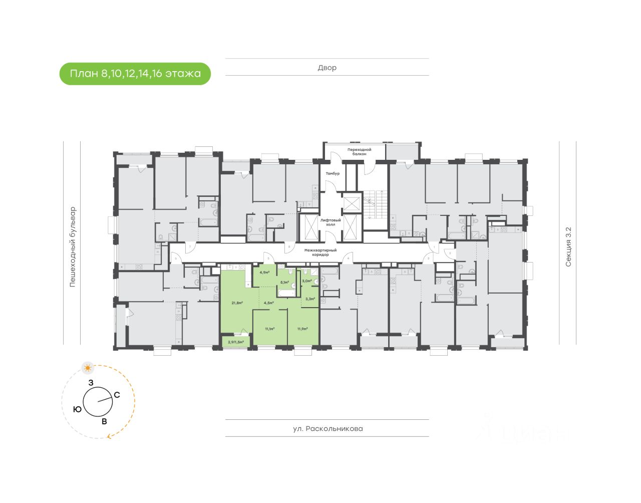 21,8 м²