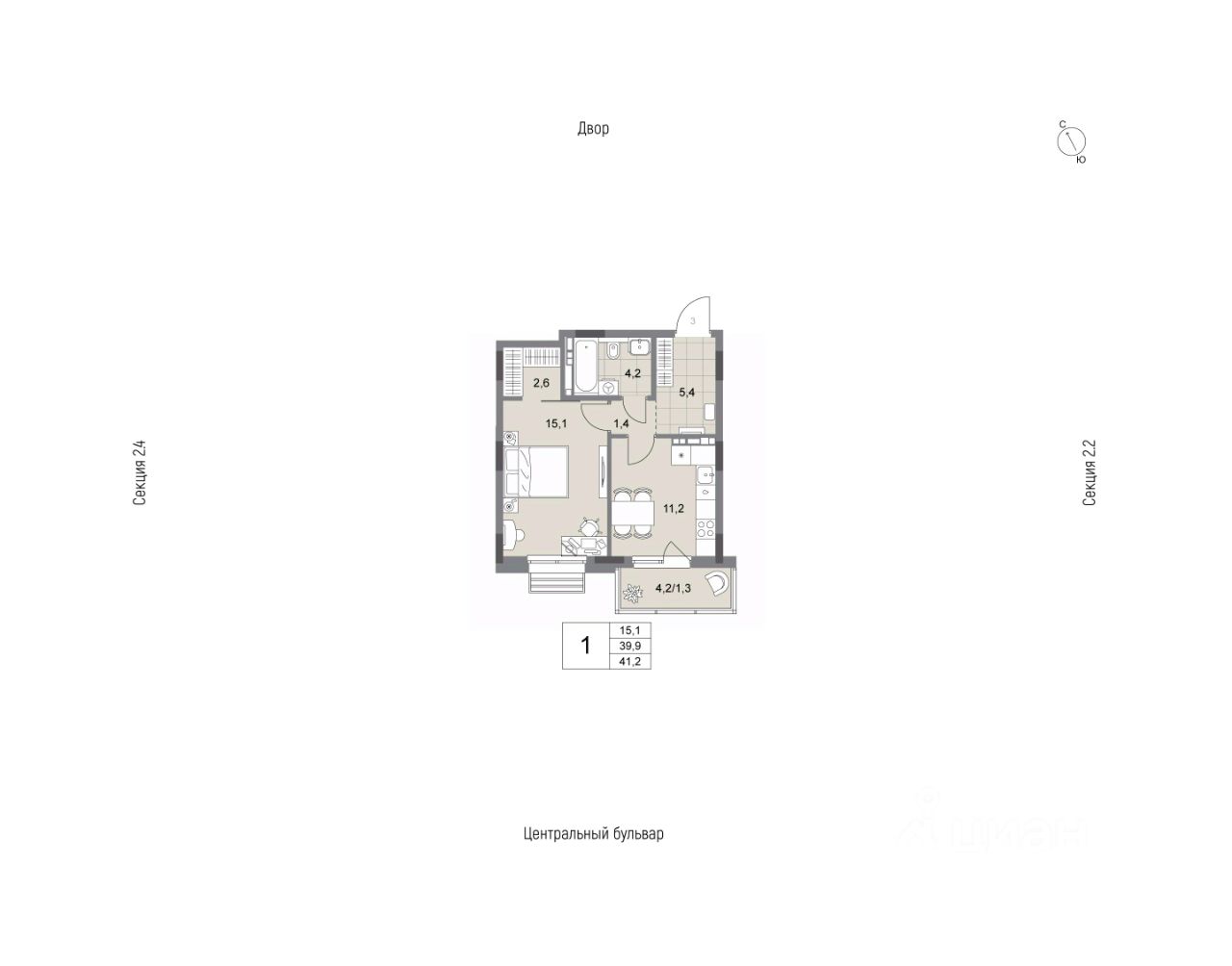 41,2 м²