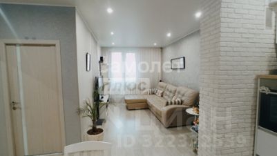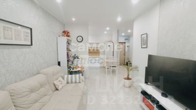 В квартире выполнен качественный и хороший ремонт, совмещенный санузел отделан красивым кафелем, установлена качественная сантехника. Общая площадь квартиры 55.8 кв.м., в том числе зал с кухней - 32,4 кв.м., спальня 14,8 кв.м. В квартире остается: на кухне - вся встраиваемая техника, стол и стулья, в спальне - кровать, тумбочка, комод, в ванной - гарнитур.
