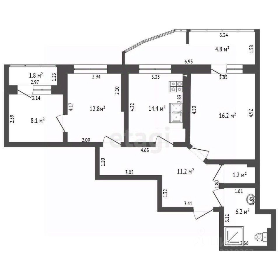 Просторная трехкомнатная квартира в отличном состоянии готова к заселению. Объект отличается продуманной планировкой и качественным добротным ремонтом. В коридоре и кухне выполнен практичный кафель, в кухонном гарнитуре останется встраиваемая техника: холодильник и посудомоечная машина. В спальне установлена система теплого пола и кондиционер, обеспечивающая комфорт в любое время года. Ванная комната оборудована бойлером для бесперебойного горячего водоснабжения и функциональной душевой кабиной.