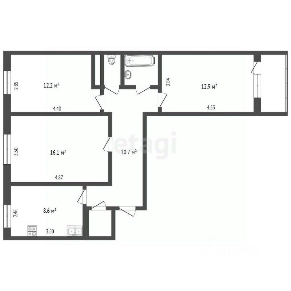 2 спальни + зал + кухня + балкон