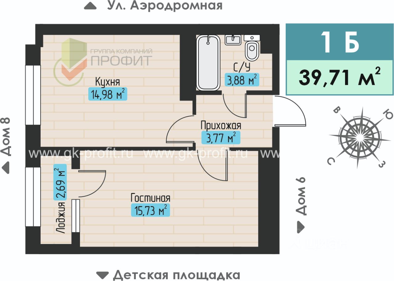 Продаётся 1-комнатная квартира в строящемся доме (Дом 7), срок сдачи: I-кв. 2026, общей площадью 39.71 кв.м., на 4 этаже. Жилой комплекс "Авиатор" - это комплекс из девяти трехэтажных домов с тремя подъездами и собственным двором без машин с детской площадкой. ЖК "Авиатор" расположен на улице Аэродромной в районе Замелекесье Набережных Челнов.