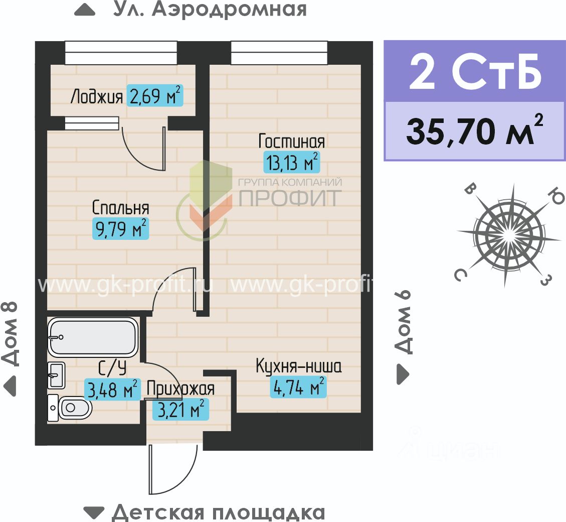 Продаётся 2-комнатная квартира в строящемся доме (Дом 7), срок сдачи: I-кв. 2026, общей площадью 35.7 кв.м., на 3 этаже. Жилой комплекс "Авиатор" - это комплекс из девяти трехэтажных домов с тремя подъездами и собственным двором без машин с детской площадкой. ЖК "Авиатор" расположен на улице Аэродромной в районе Замелекесье Набережных Челнов.