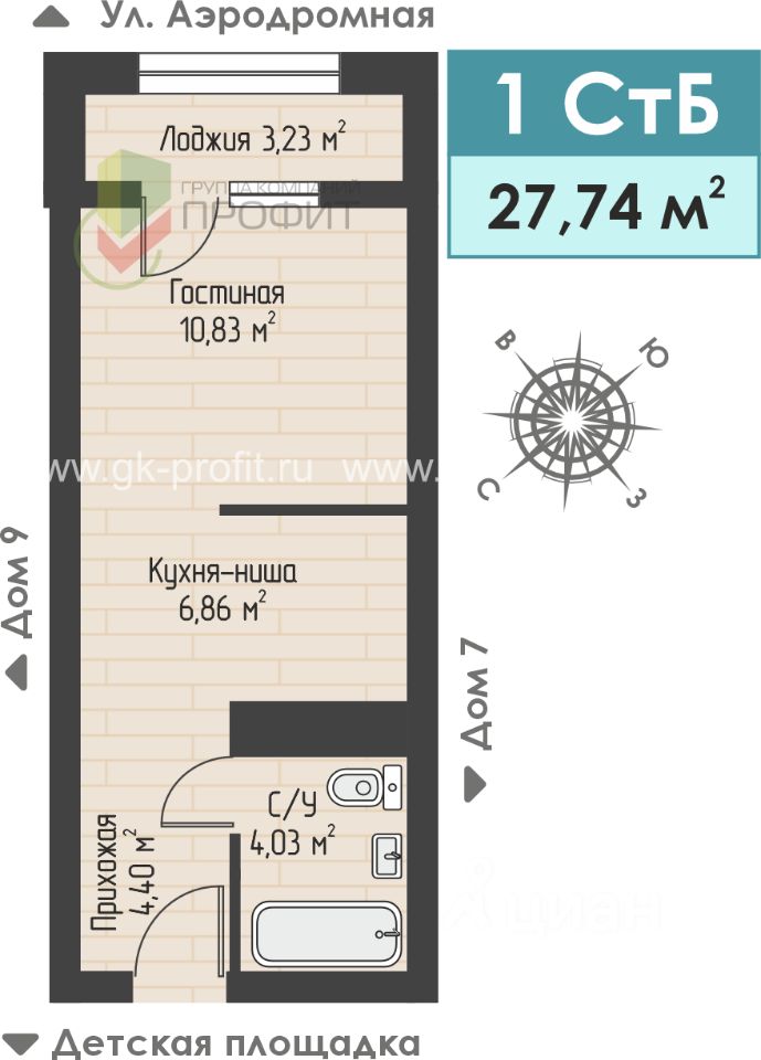 Продаётся 1-комнатная квартира в строящемся доме (Дом 8), срок сдачи: II-кв. 2026, общей площадью 27.74 кв.м., на 4 этаже. Жилой комплекс "Авиатор" - это комплекс из девяти трехэтажных домов с тремя подъездами и собственным двором без машин с детской площадкой. ЖК "Авиатор" расположен на улице Аэродромной в районе Замелекесье Набережных Челнов.