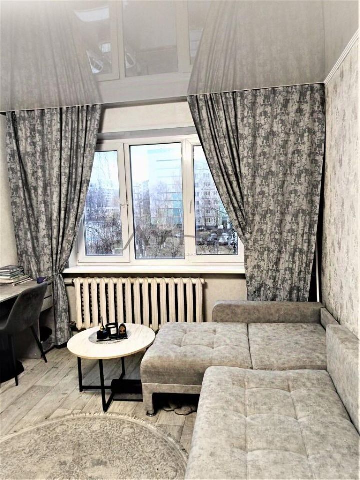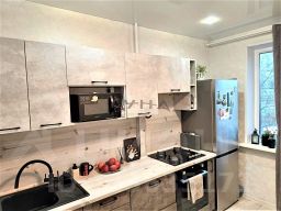 Квартира расположена на третьем этаже. Общая площадь 35,6 м2. В гостинной (18м2) есть ниша - место для кровати или установки большой гардеробной, широкое окно дает много дневного света. Вид из окон на уютный двор. На кухне (8,5 м2) установлен хороший кухонный гарнитур (при продаже остается). Санузел раздельный, стены и полы в нем оформлены современной кафельной плиткой, установлен бойлер для горячей воды.