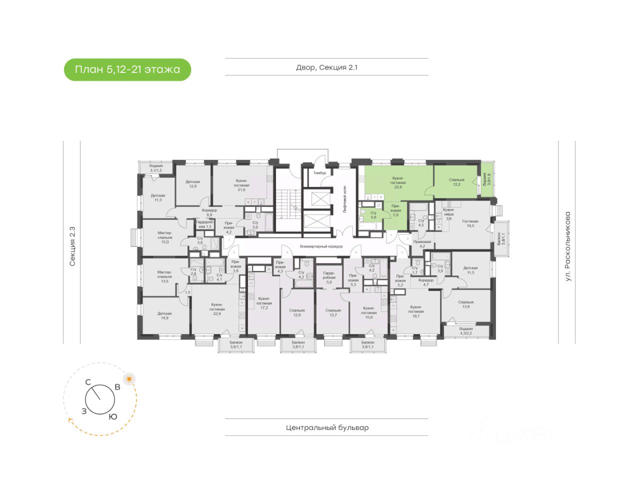 22,8 м²