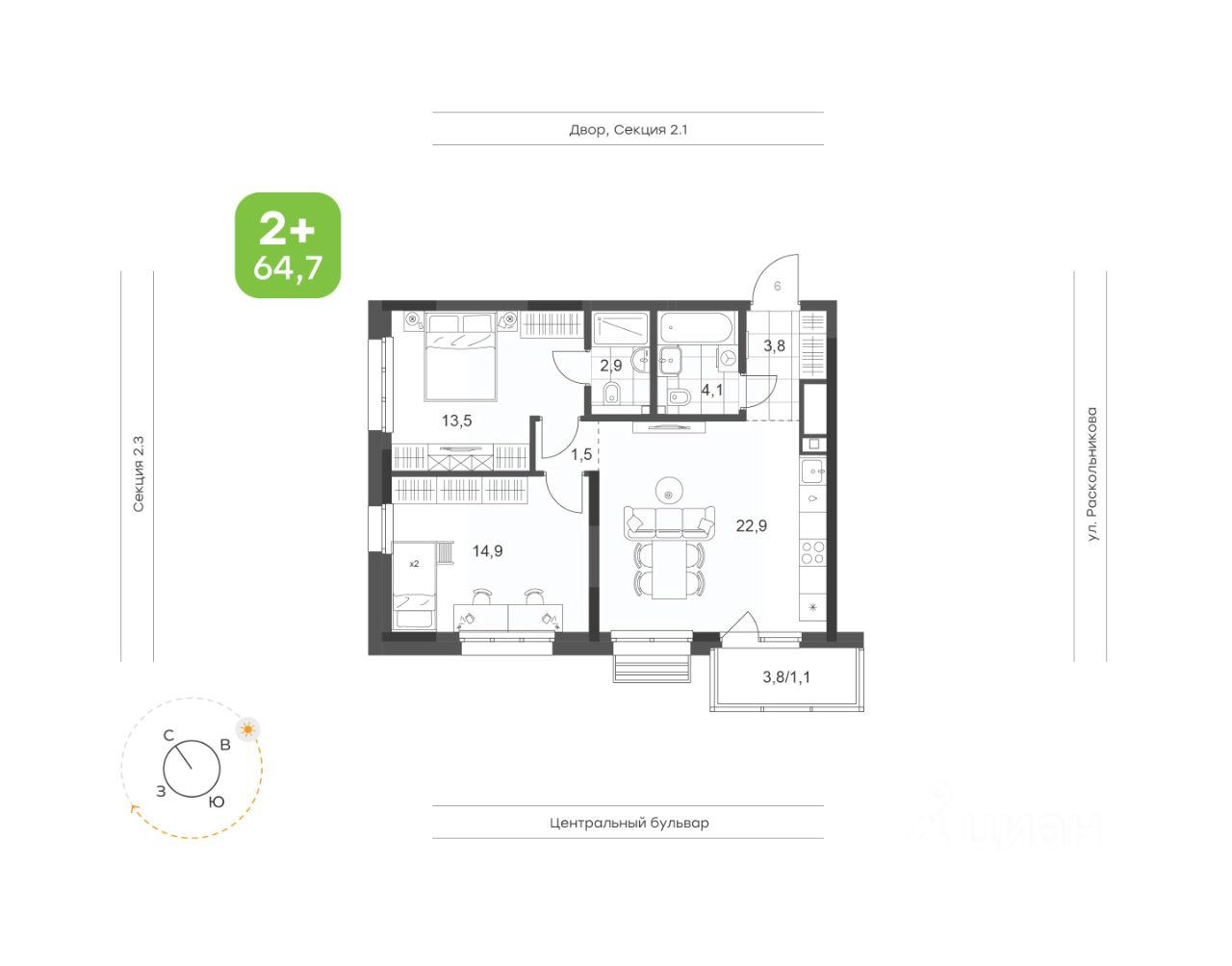Квартира на 2 стороны света