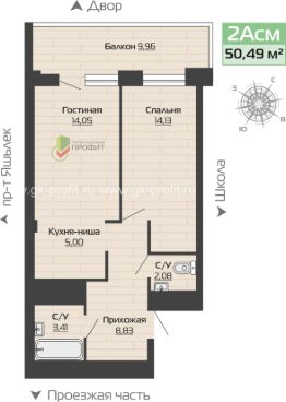 Продаётся 2-комнатная квартира в строящемся доме (дом 69-1-2), срок сдачи: III-кв. 2026, общей площадью 50.49 кв.м., на 8 этаже. Новый жилой дом от застройщика "ГК ПРОФИТ" расположен по адресу: Россия, Республика Татарстан, Набережные Челны, Залесный проспект