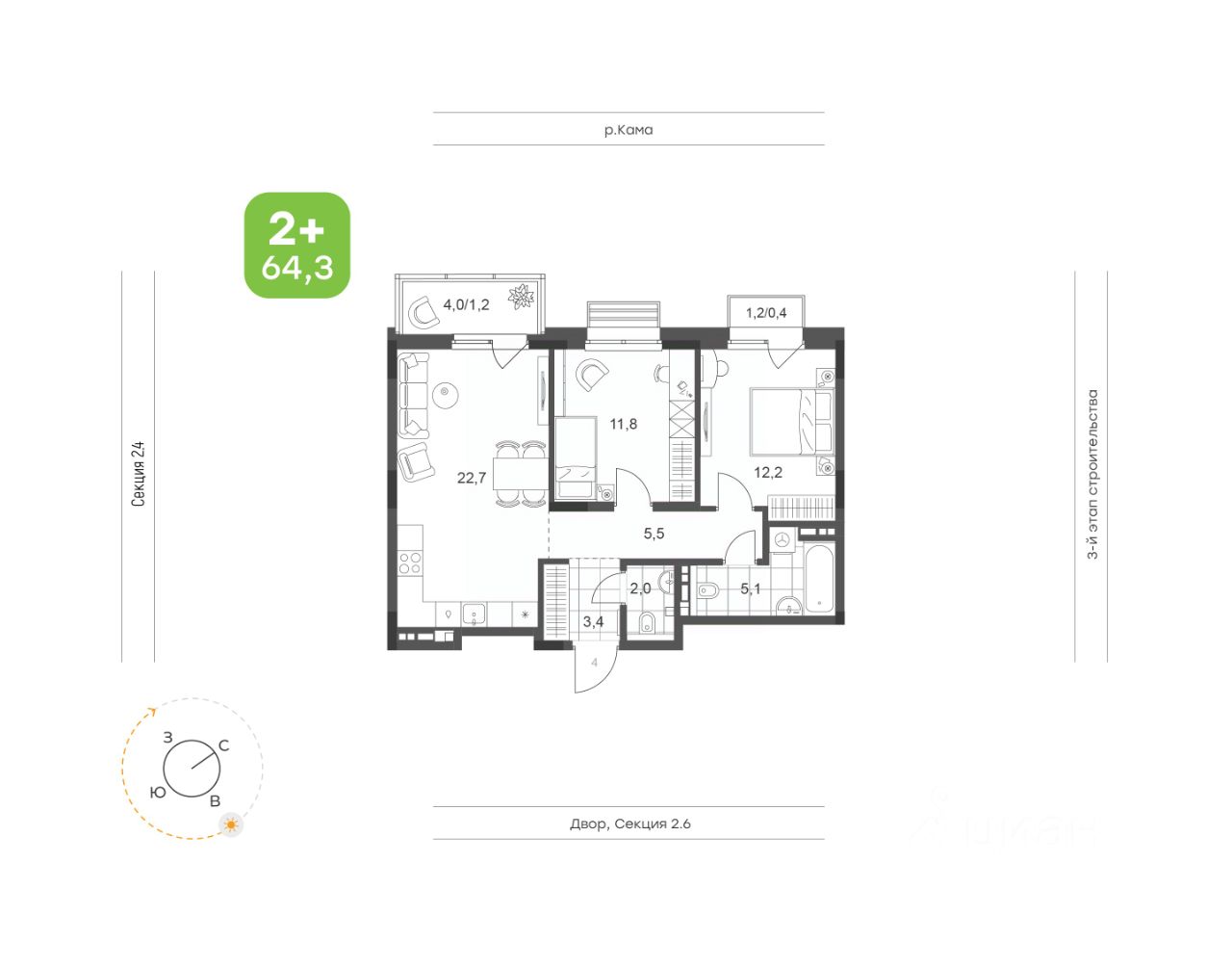 Квартира с возможностью ежедневно любоваться прекрасными видами на Каму
