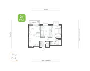 64,3 м²