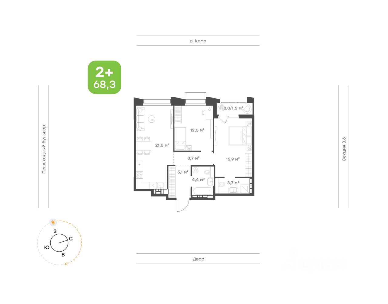 68,3 м²