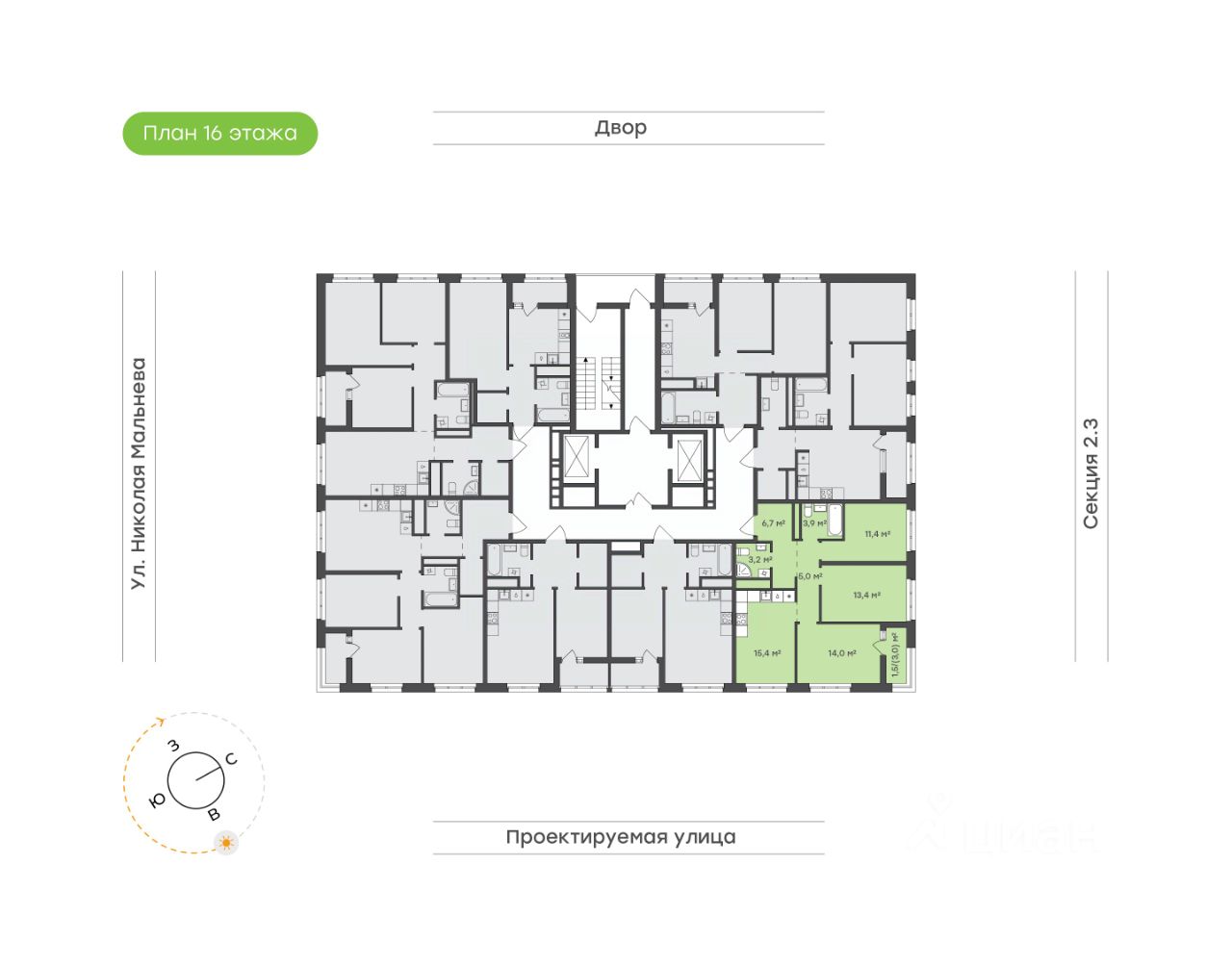 15,4 м²