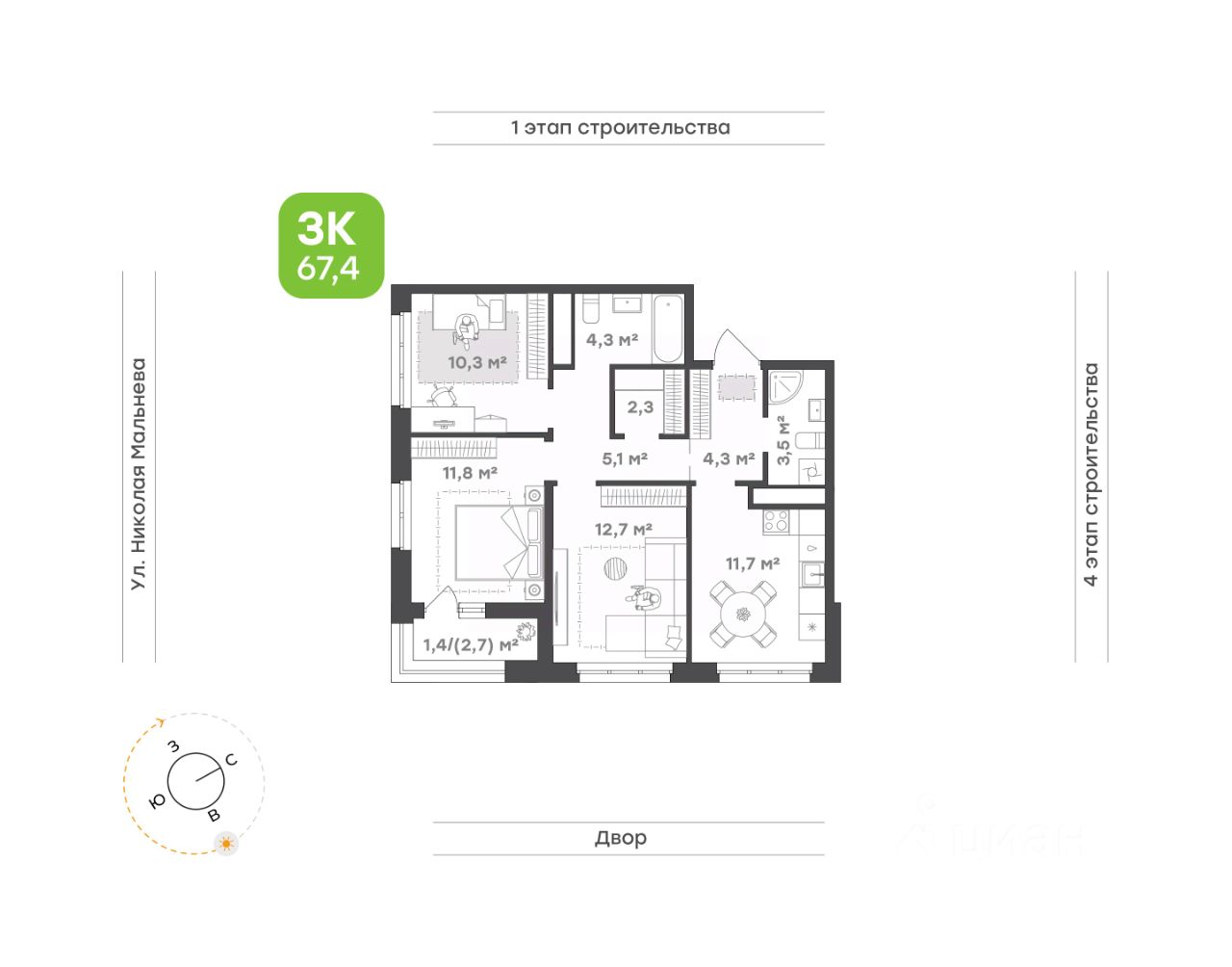 67,4 м²