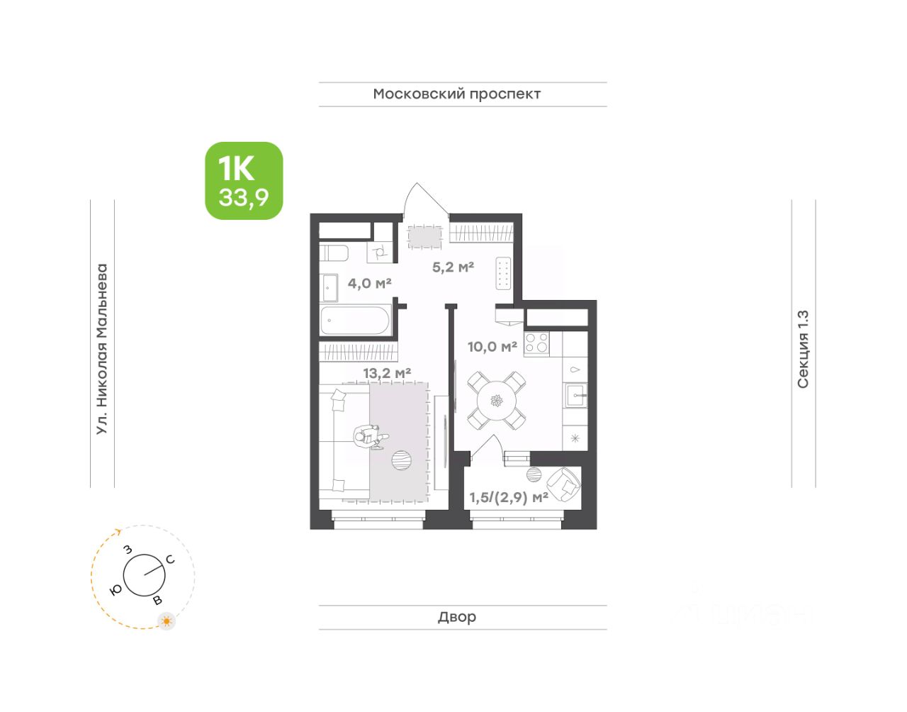 33,9 м²