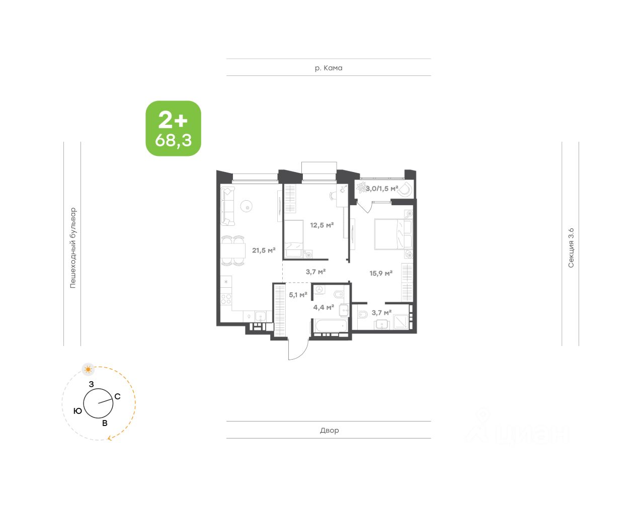 68,3 м²