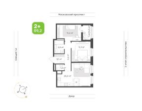 2 комн.кв., 60.8 кв.м. 5/9