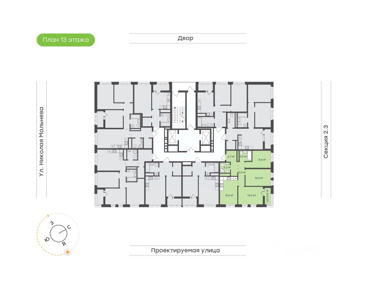 15,4 м²