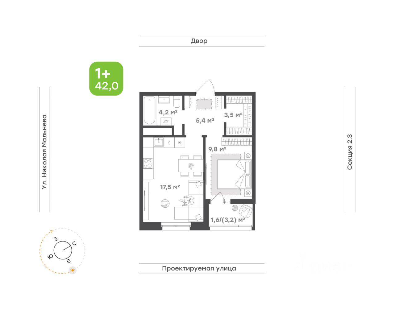 42 м²
