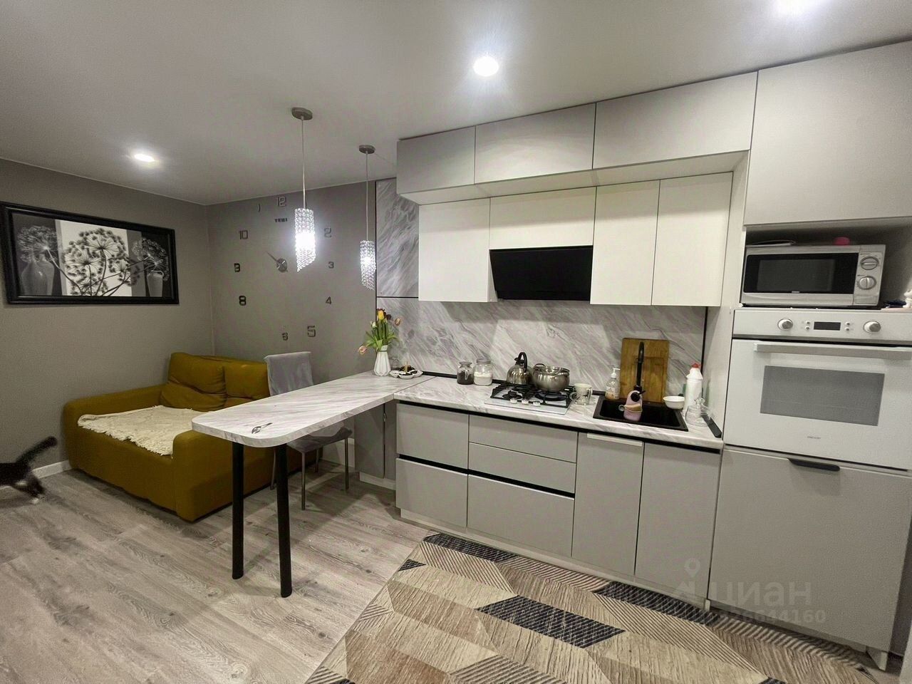 - Современный ремонт: ламинат, натяжные потолки, качественные материалы.