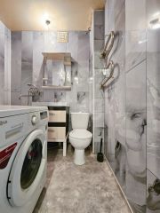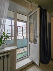 Санузел совмещенный, отделан в современном пластиковом исполнении. А просторный балкон площадью 8 м станет отличным местом для утреннего кофе или вечернего отдыха.