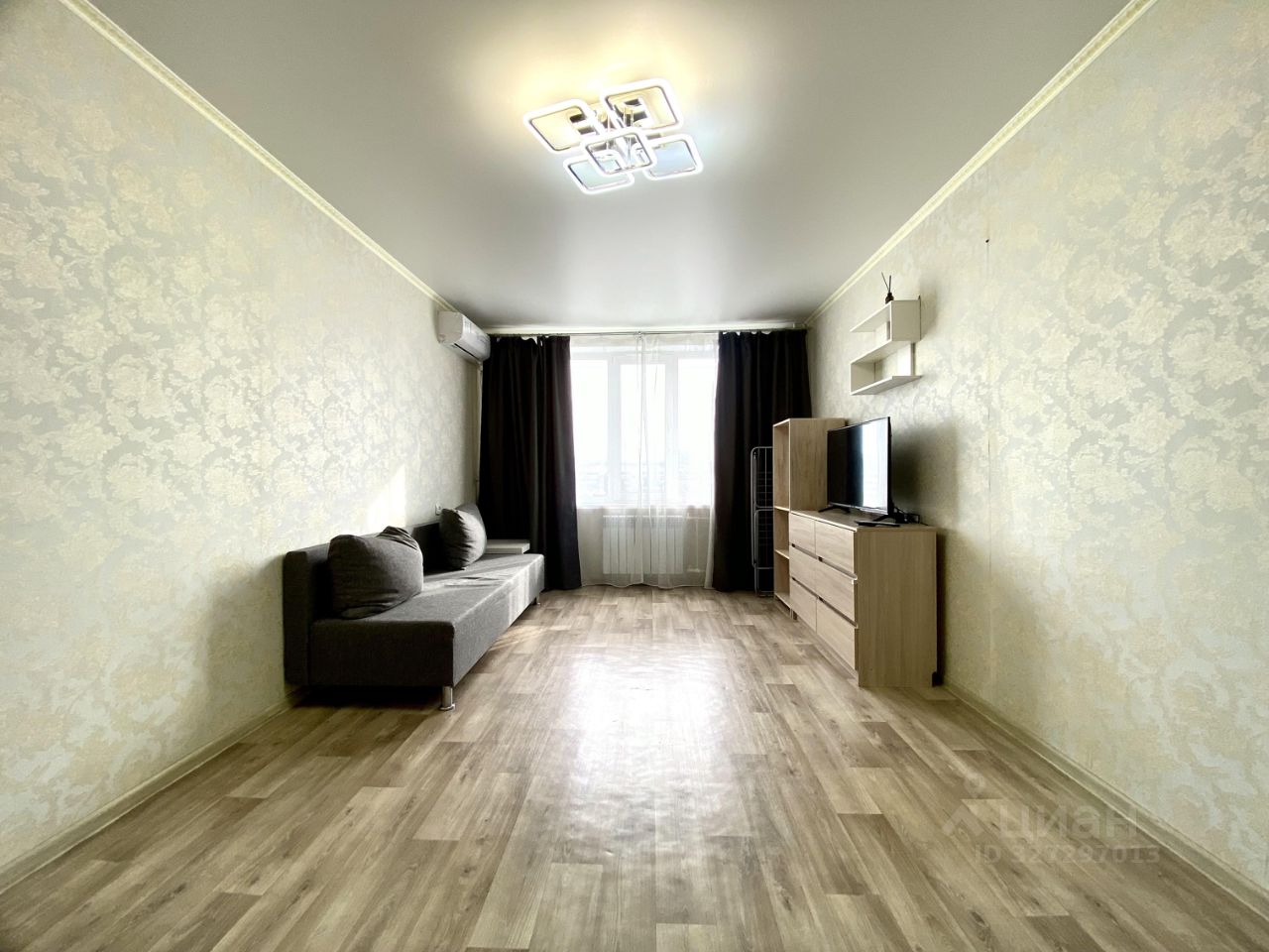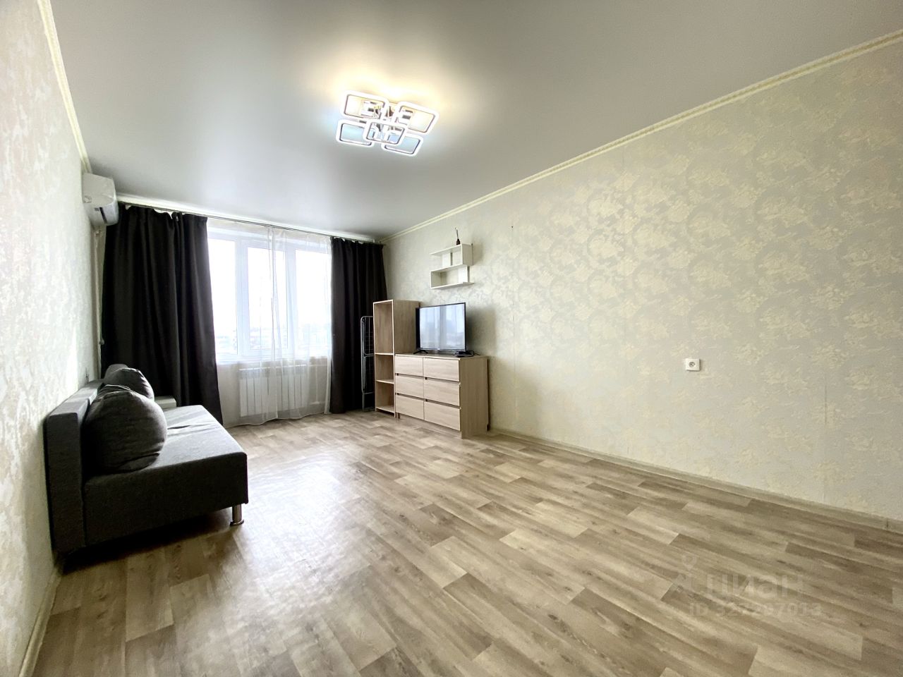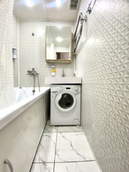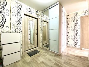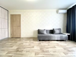 Кондиционер, кухонный гарнитур, два вместительных встроенных шкафа, диван, кровать с матрасом, стол письменный, стиральная машина, холодильник остается для будущих владельцев.