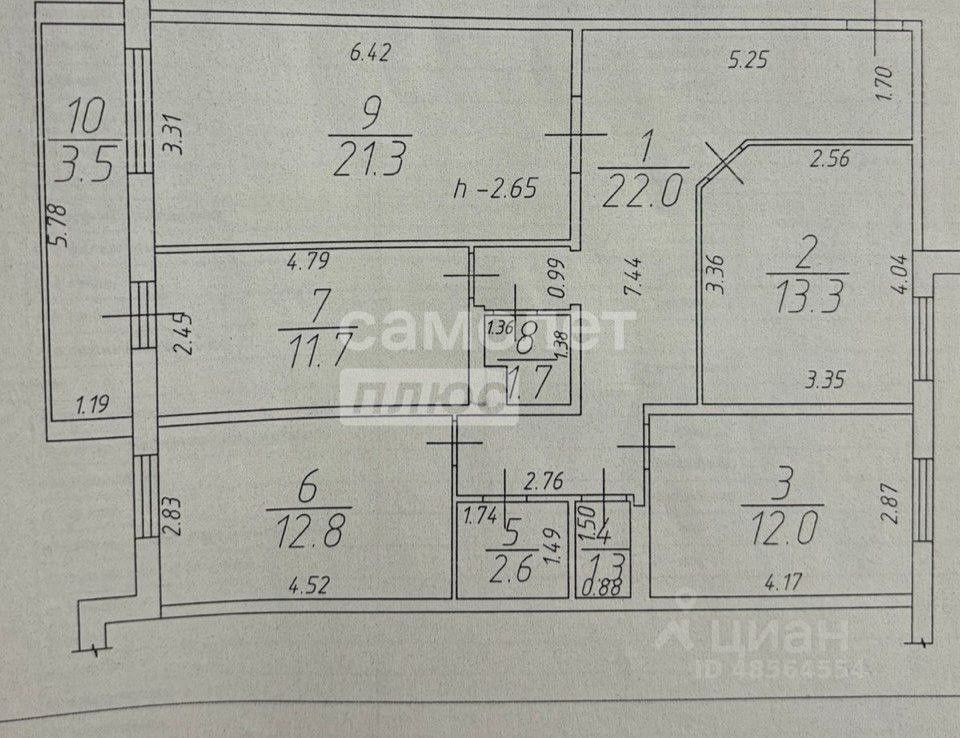 Продается 4-комнатную квартиру 102,2 м² на 10/10 этаже.