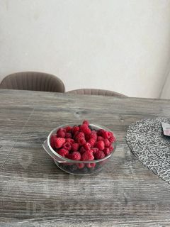автополив. Насаждения: молодые яблони, вишня, малина, ежевика, туя, декоративные кустарники. Грядки разновидной клубники. Вдоль забора высажены молодые сосны. Большая площадка для автомобилей. Установлено видеонаблюдение.
