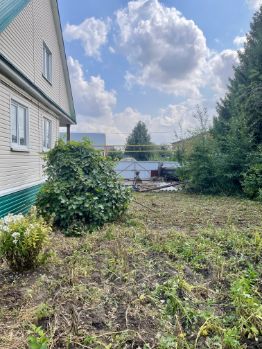 По периметру забор, металлические ворота, на участке сортовые плодовые, ягодные деревья (груши, яблоки, сливы, черешня, смородина, виноград и тп), стоянка на две машины. На участке есть капитальный гараж, хоз блок, мастерская, баня на дровах, теплица.