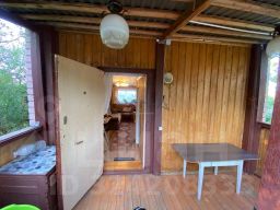 Участок 4 сотки, двухэтажный кирпичный дом (40 кв.м.) с открытой верандой. Внутренняя отделка: первый этаж обшит деревянной панелью, второй покрашен. Окна- на первом окна пластиковые, на втором деревянные. В доме сливная система.Мебель остается, всё в хорошем состоянии.
