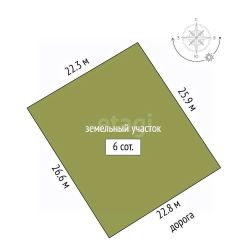 Участок правильной формы, ровный, построек никаких нет. На 6 сотках земли, вы можете осуществить все свои фантазии и желания!