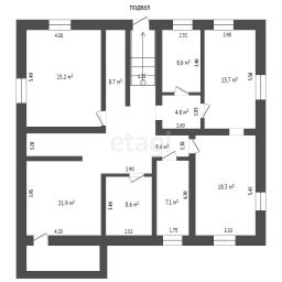В доме 6 комнат: на 1 этаже 2 гостевые комнаты, кухня также раздельный туалет и душевая, С первого этажа есть спуск в подвал, в котором есть много свободных помещений, также котельная, комната с доступом к канализационным трубам, комната с электрическими щитами, сауна ( в сауне установлен электрический котел) перед сауной установлен душ, также есть место для отдыха после сауны, баня, кладовая с полками для банок, кладовая для овощей; на 2 этаже 4 спальные комнаты, раздельные ванная комната и туалет, большой светлый балкон (8м). Со второго этажа есть подъем на чердак. Потолки высокие. В доме отопление газовое, электричество есть, септик на 4 кольца, водоотведение центральное.