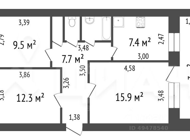 От года, комм. платежи не включены, комиссия 50%, залог 10 000 ₽
